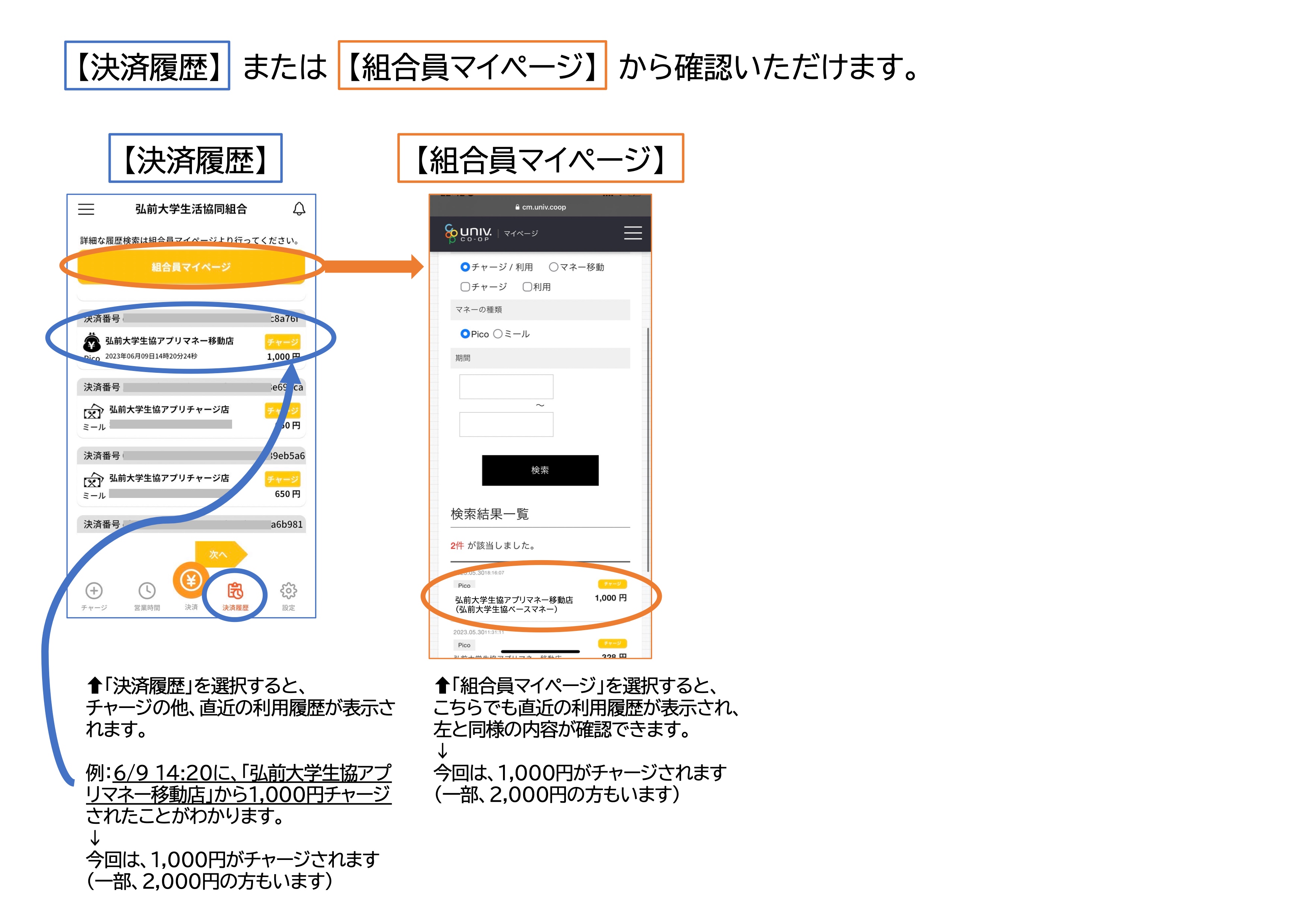 電子マネーチャージは、「大学生協アプリ(公式)」にて確認いただけます。